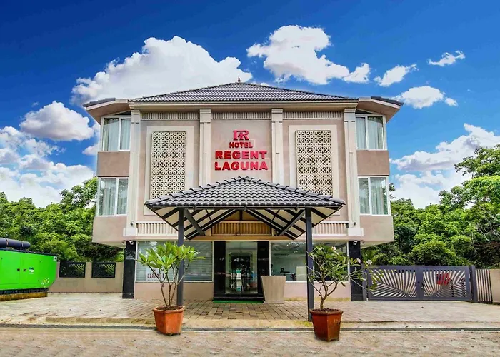 Das 4-Sterne-Regent Laguna Anjuna - Boutique Resort With Pool liegt in einer Entfernung von 10 Fahrminuten vom Curlies Beach Shack und bietet WLAN in den öffentlichen Bereichen und Parkplätze.